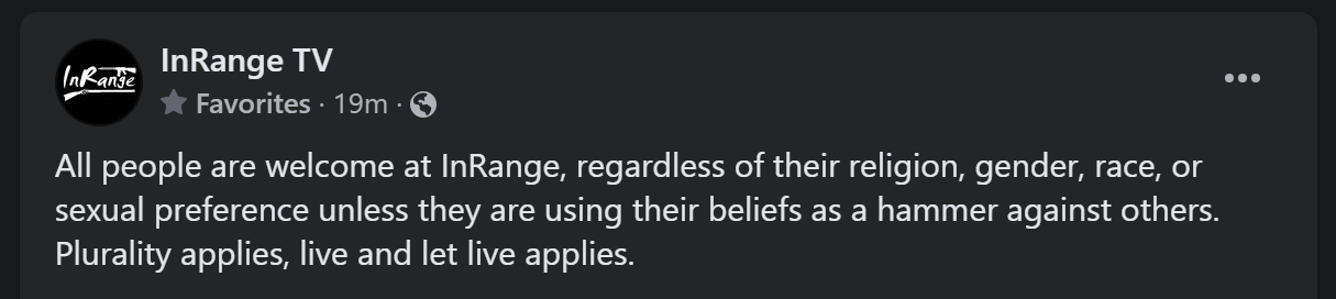The long and the short of it- InRange, Karl and Russel are 100% on the right side of history. They have been getting beat up (Internet troll-wise) and even, seemingly, losing a deal with Brownells because he dares to say that 2A is for everyone.